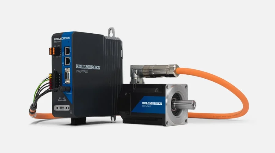 Kollmorgen has introduced its Kollmorgen Essentials™ motion system, a new line of servo motion solutions that combines an optimally matched servo drive, a servo motor with integrated absolute multi-turn feedback, and a combined power/data cable. The Kollmorgen Essentials drive includes PROFINET and the multi-axis synchronization capabilities allow designers to have precise control of multi-axis systems via PROFINET IRT. Kollmorgen Essentials servo motors are rated at 120, 240, 400 or 480 VAC and are designed for the most common power requirements from 200 to 4,000 watts. Each winding delivers a rated speed of 3,000 rpm, with peak performance reaching up to 6,000 rpm.